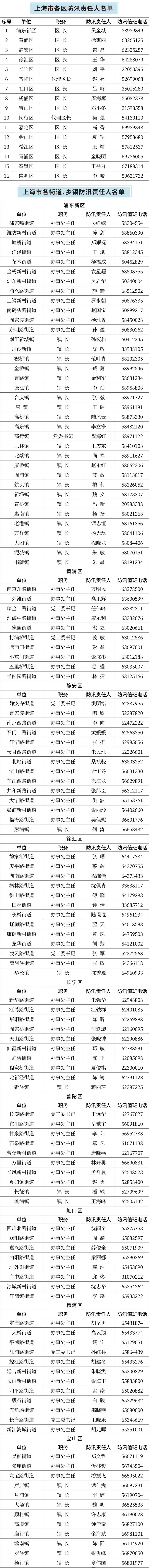 为进一步落实各级防汛责任制,根据《中华人民共和国防洪法》《中华人民共和国防汛条例》《上海市防汛条例》关于防汛抗旱工作实行各级人民政府行政首长负责制的规定,现将各街道、乡镇防汛责任人名单通告如下: