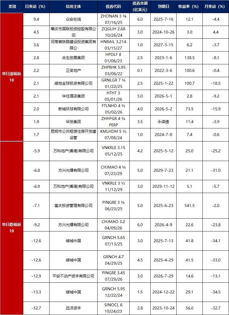 6月18日,2只产业债成交价格偏离幅度超10%,为“H8龙控05”跌超93%,“H0宝龙04”涨超23%。