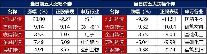 【转债市场主要指数涨跌不一】 6月18日,转债市场有所分化,当日中证转债、上证转债分别收涨0.01%、0.05%,深证转债收跌0.07%。当日,转债市场成交额597.5亿元,较前一交易日缩量39.21亿元。转债市场个券多数下跌,470支转债中,205支收涨东升国际登陆,256支下跌,9支持平。当日上涨个券中,恒帅转债继续涨停20%,雪榕转债涨超9%,联得转债涨超8%;下跌个券中,北路转债、天路转债跌逾9%,金丹转债跌逾8%。