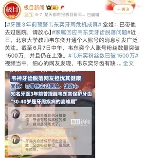 [1] 《全网都在关心韦东奕的牙,医生提醒》.中国新闻网2025-06-10