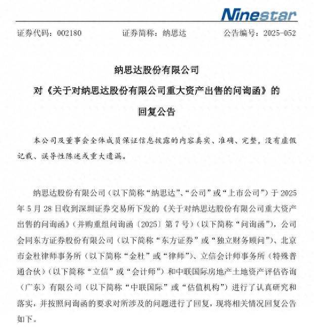 6月19日上午,纳思达公告了对深交所下发的关于重大资产出售的问询函的回复。