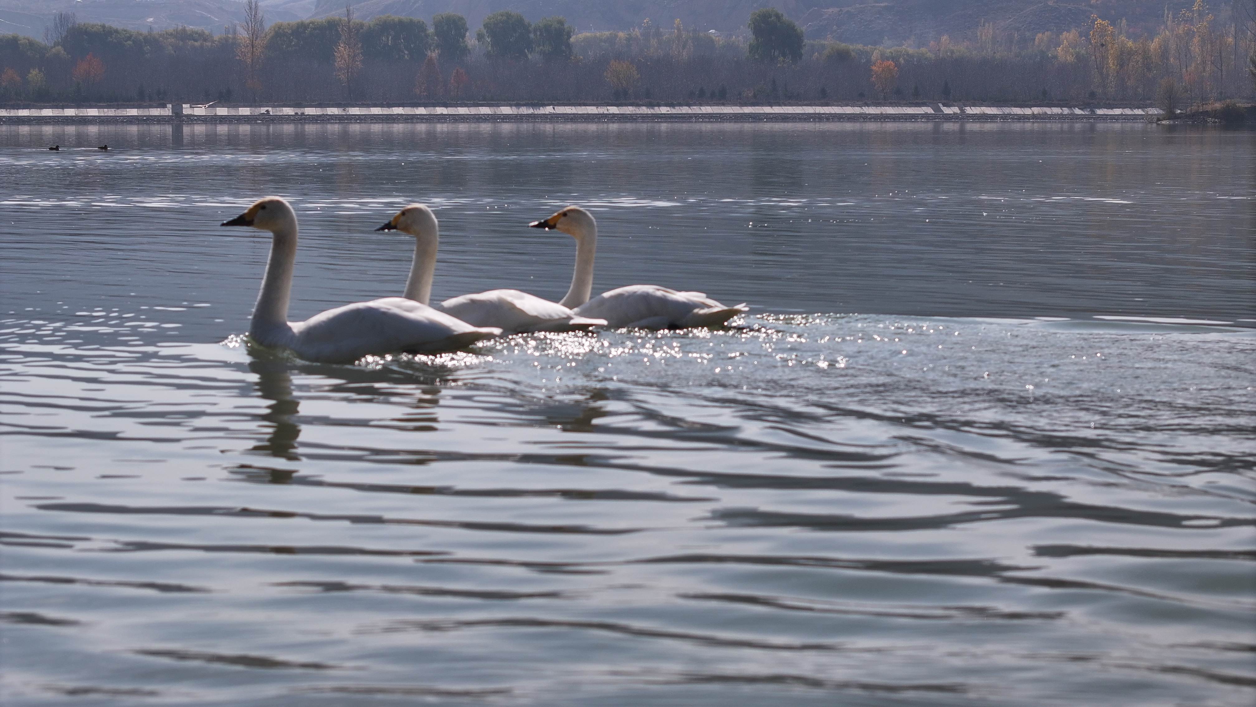 11月3日,青海省海东市化隆回族自治县群科镇的黄河上迎来首批越冬的大天鹅,已是连续十一年来此过冬,为冬日高原增添了一抹生机。
